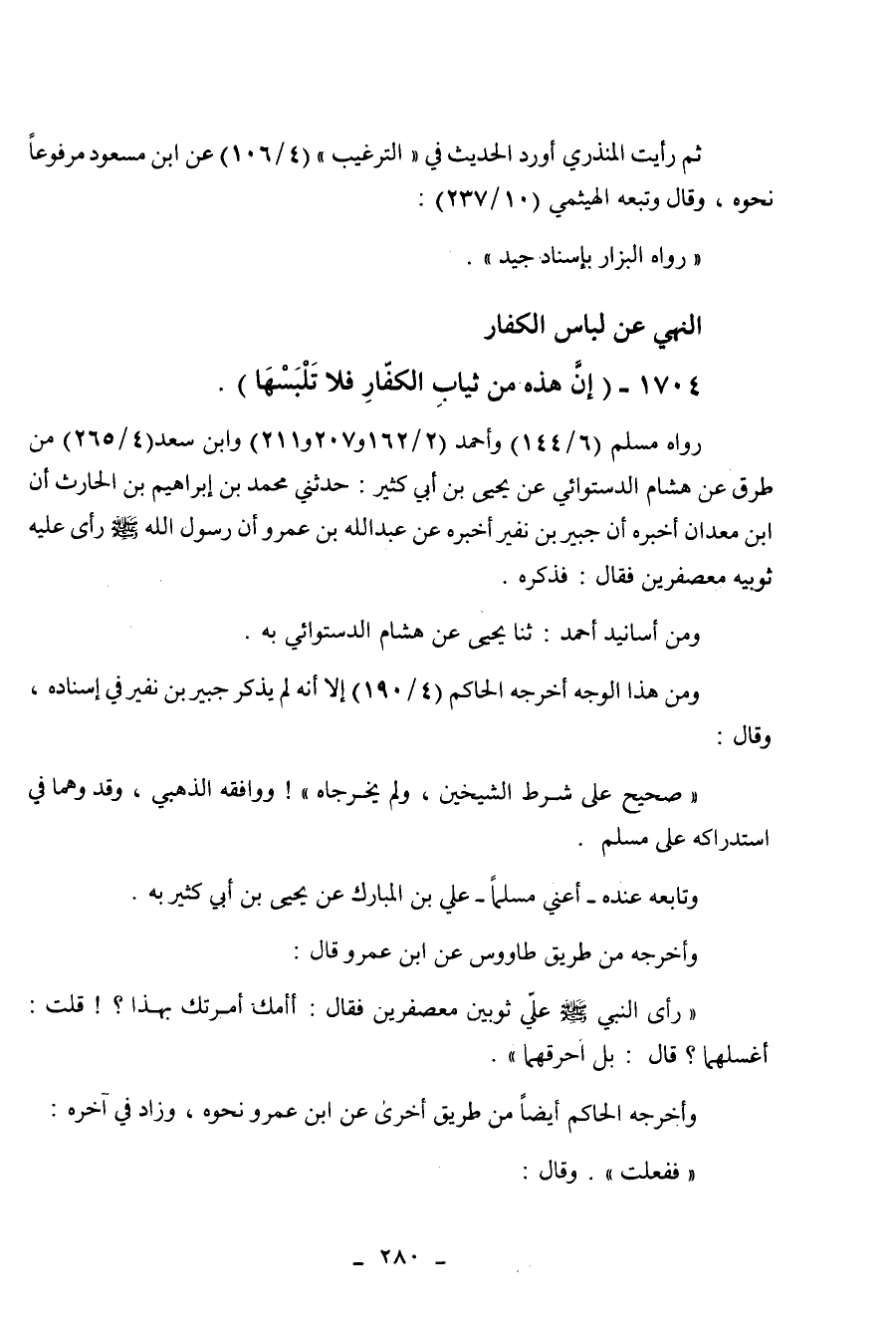 الله صلى الله عليه وسلم رأى عليه ثوبيه معصفرين فقال: فذكره. ومن أسانيد
