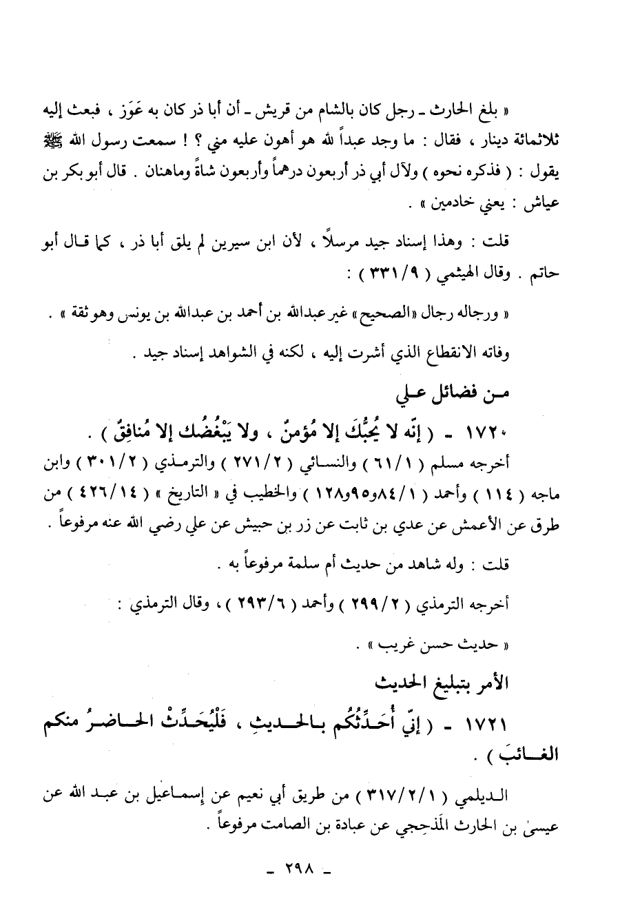 1720 - " إنه لا يحبك إلا مؤمن ولا يبغضك إلا منافق ".