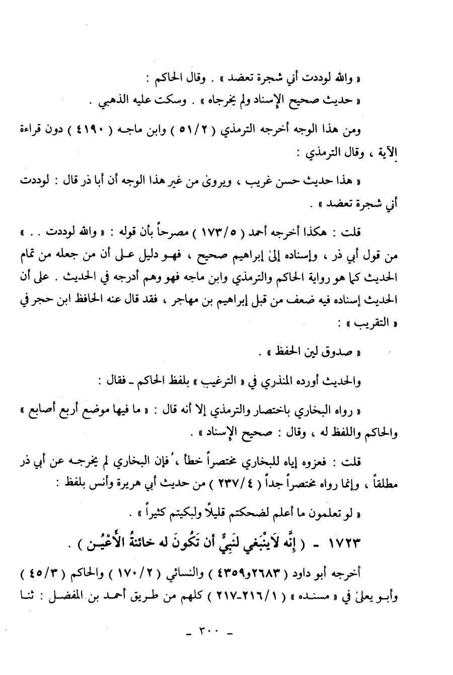 " والله لوددت أني شجرة تعضد ". وقال الحاكم: " حديث صحيح