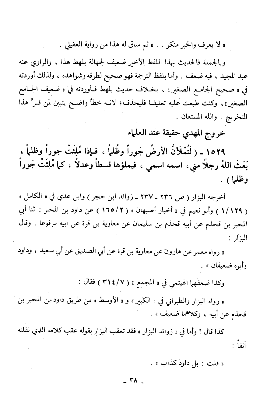 1529 - " لتملأن الأرض جورا وظلما، فإذا ملئت جورا وظلما، بعث الله رجلا مني،