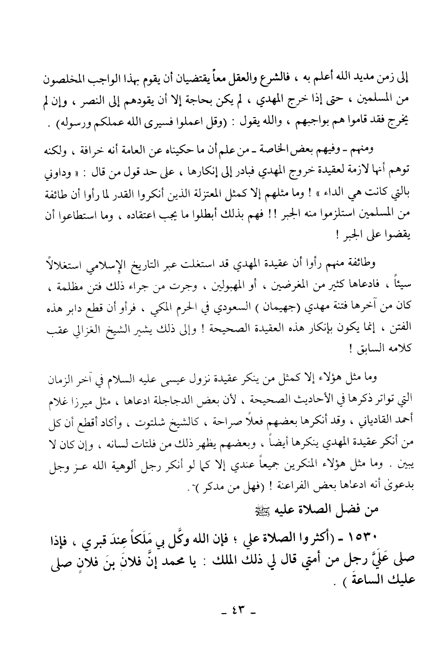 وأكاد أقطع أن كل من أنكر عقيدة المهدي ينكرها أيضا، وبعضهم يظهر ذلك من