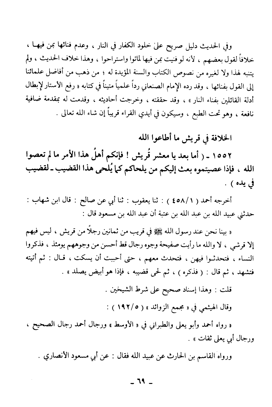 1552 - " أما بعد يا معشر قريش! فإنكم أهل هذا الأمر ما لم تعصوا الله، فإذا عصيتموه
