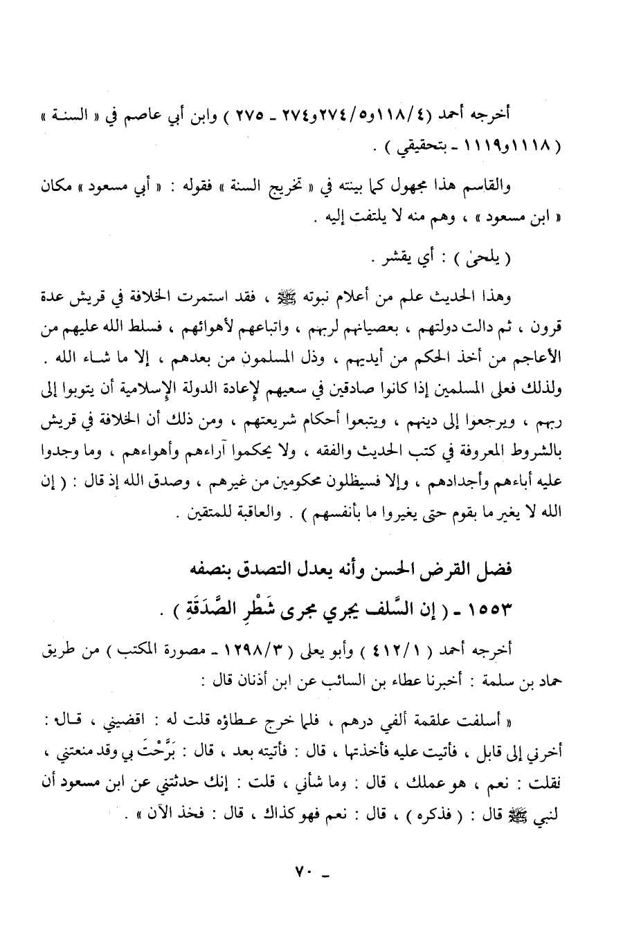 1553 - " إن السلف يجري مجرى شطر الصدقة ".