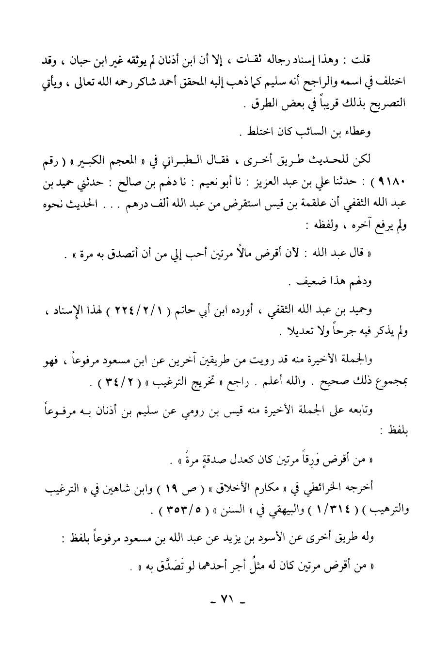 ولم يرفع آخره، ولفظه: " قال عبد الله: لأن أقرض مالا مرتين أحب إلي من أن