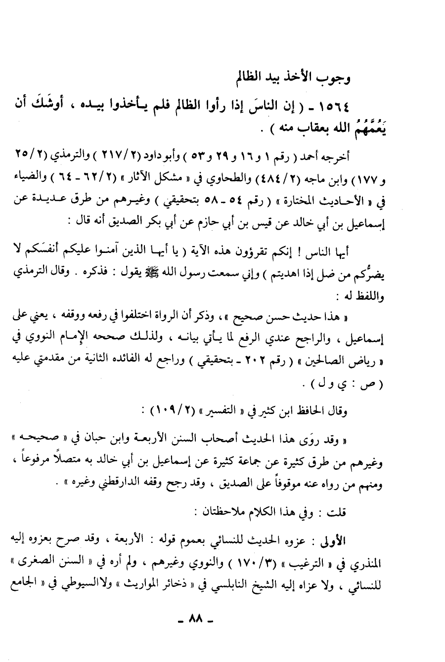 1564 - " إن الناس إذا رأوا الظالم فلم يأخذوه بيده، أوشك أن يعمهم الله بعقاب منه ".