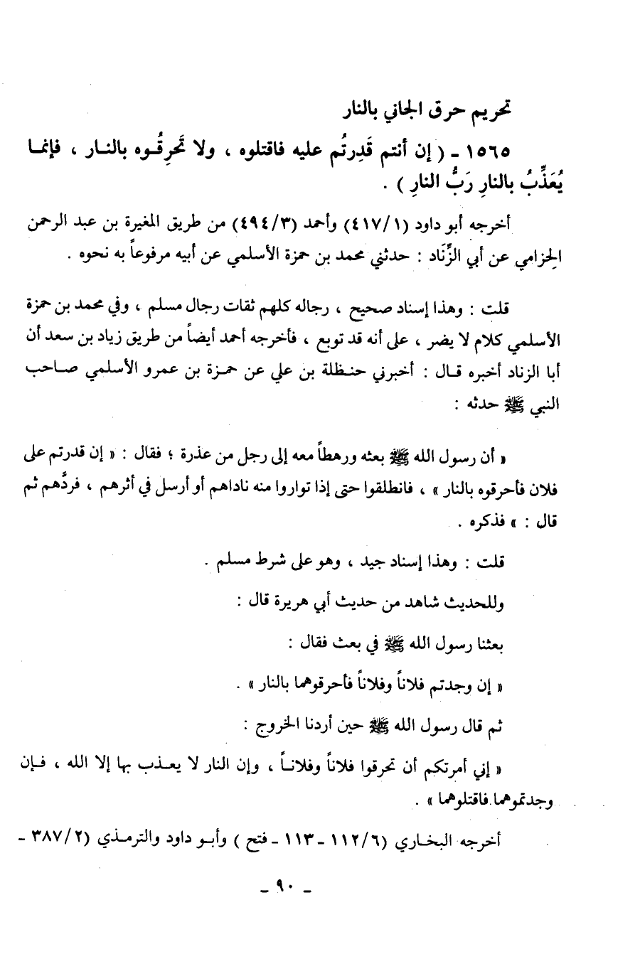 1565 - " إن أنتم قدرتم عليه فاقتلوه ولا تحرقوه بالنار، فإنما يعذب بالنار رب النار