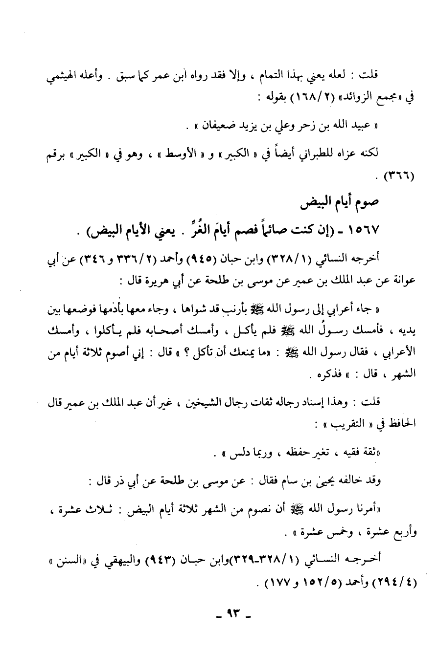 1567 - " إن كنت صائما فصم أيام الغر. يعني الأيام البيض ".
