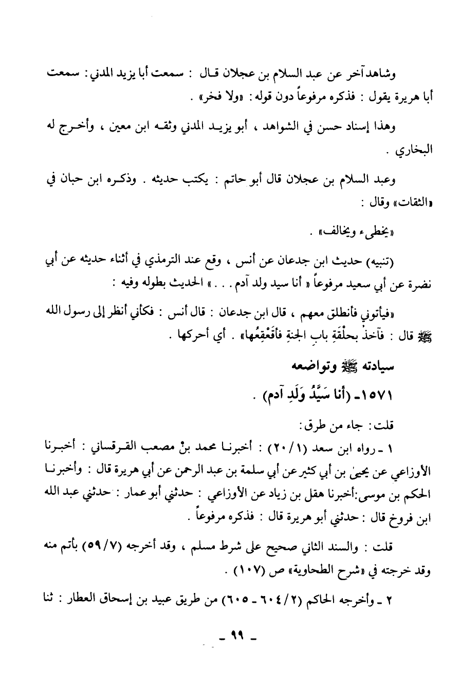 فذكره مرفوعا دون قوله: " ولا فخر ". وهذا إسناد حسن في الشواهد، أبو