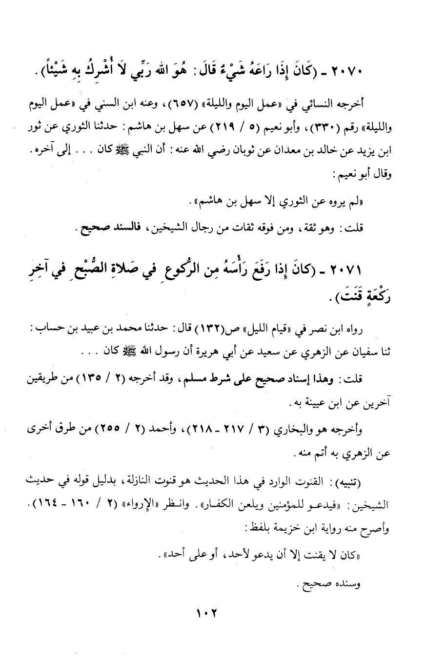 2071 - " كان إذا رفع رأسه من الركوع في صلاة الصبح في آخر ركعة قنت ".