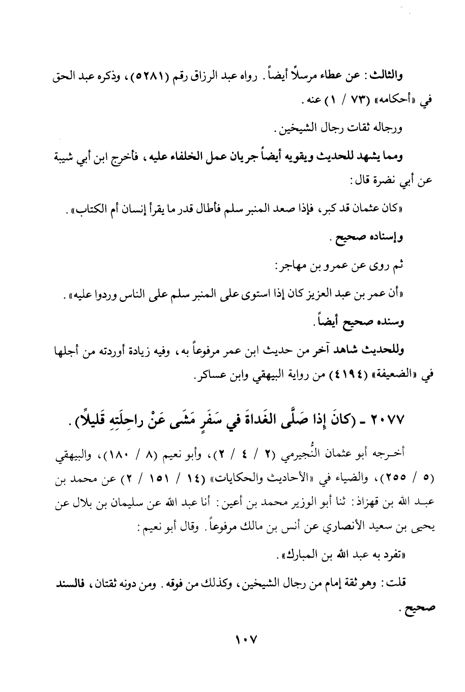 2077 - " كان إذا صلى الغداة في سفر مشى عن راحلته قليلا ".