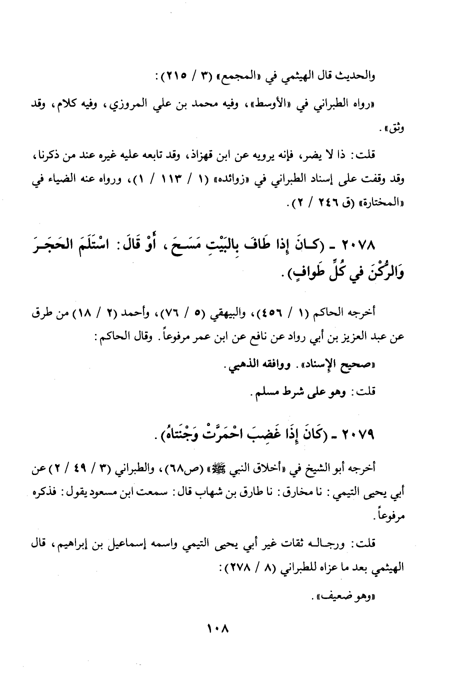 2078 - " كان إذا طاف بالبيت مسح، أو قال: استلم الحجر والركن في كل طواف ".