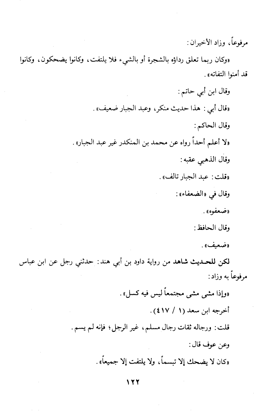 " قال أبي: هذا حديث منكر، وعبد الجبار ضعيف ". وقال الحاكم: " لا أعلم