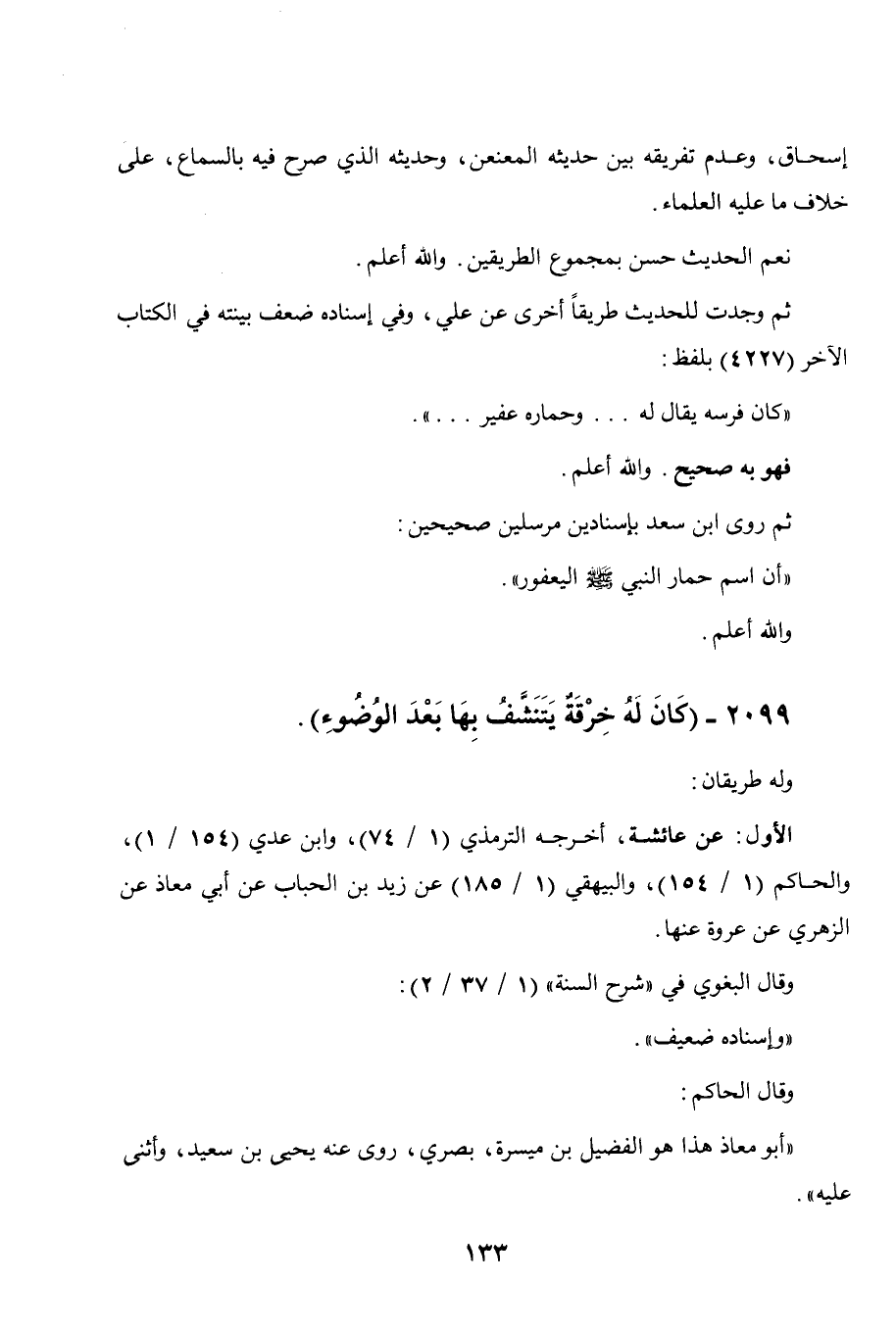 2099 - " كان له خرقة يتنشف بها بعد الوضوء ".