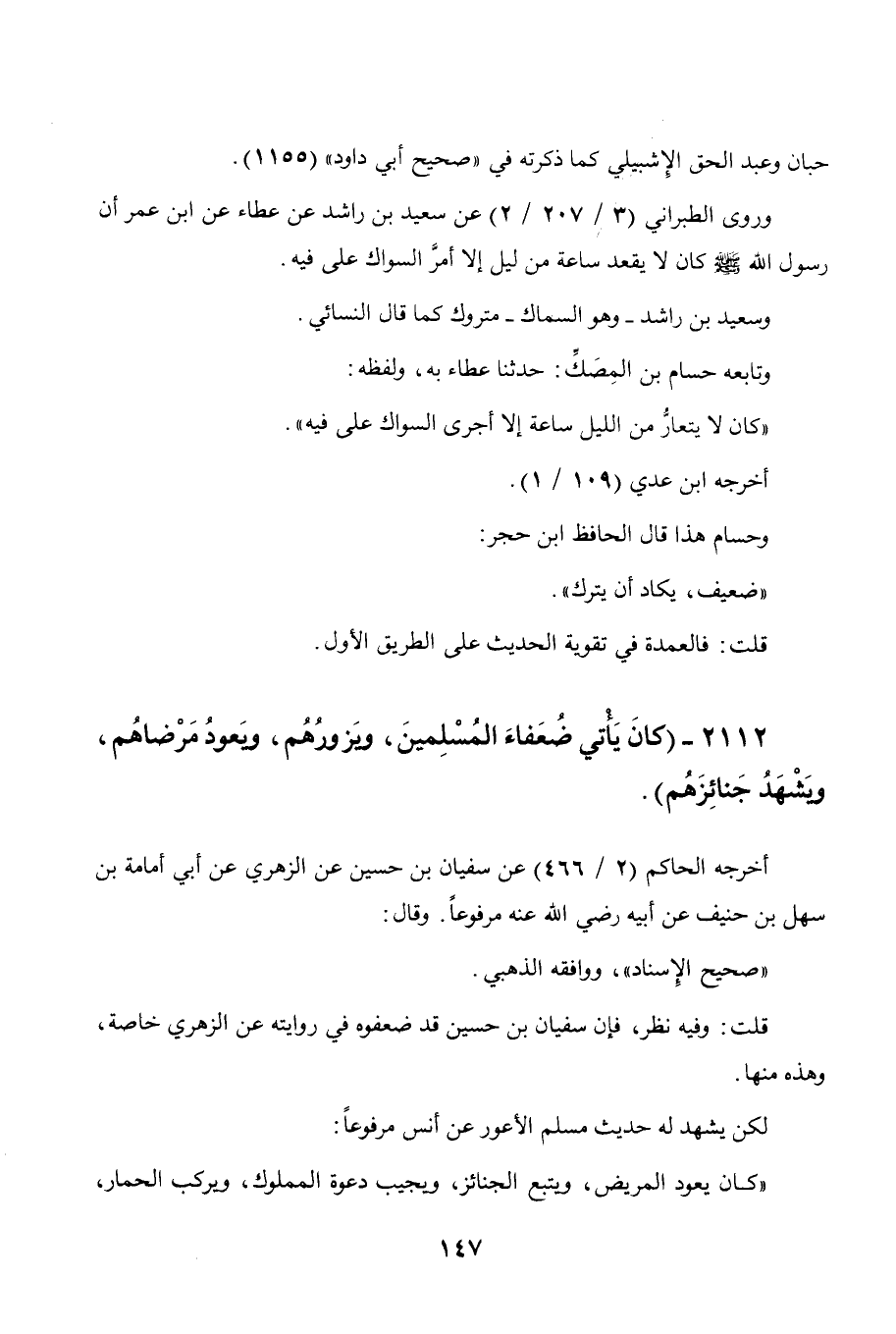 2112 - " كان يأتي ضعفاء المسلمين ويزورهم ويعود مرضاهم ويشهد جنائزهم ".
