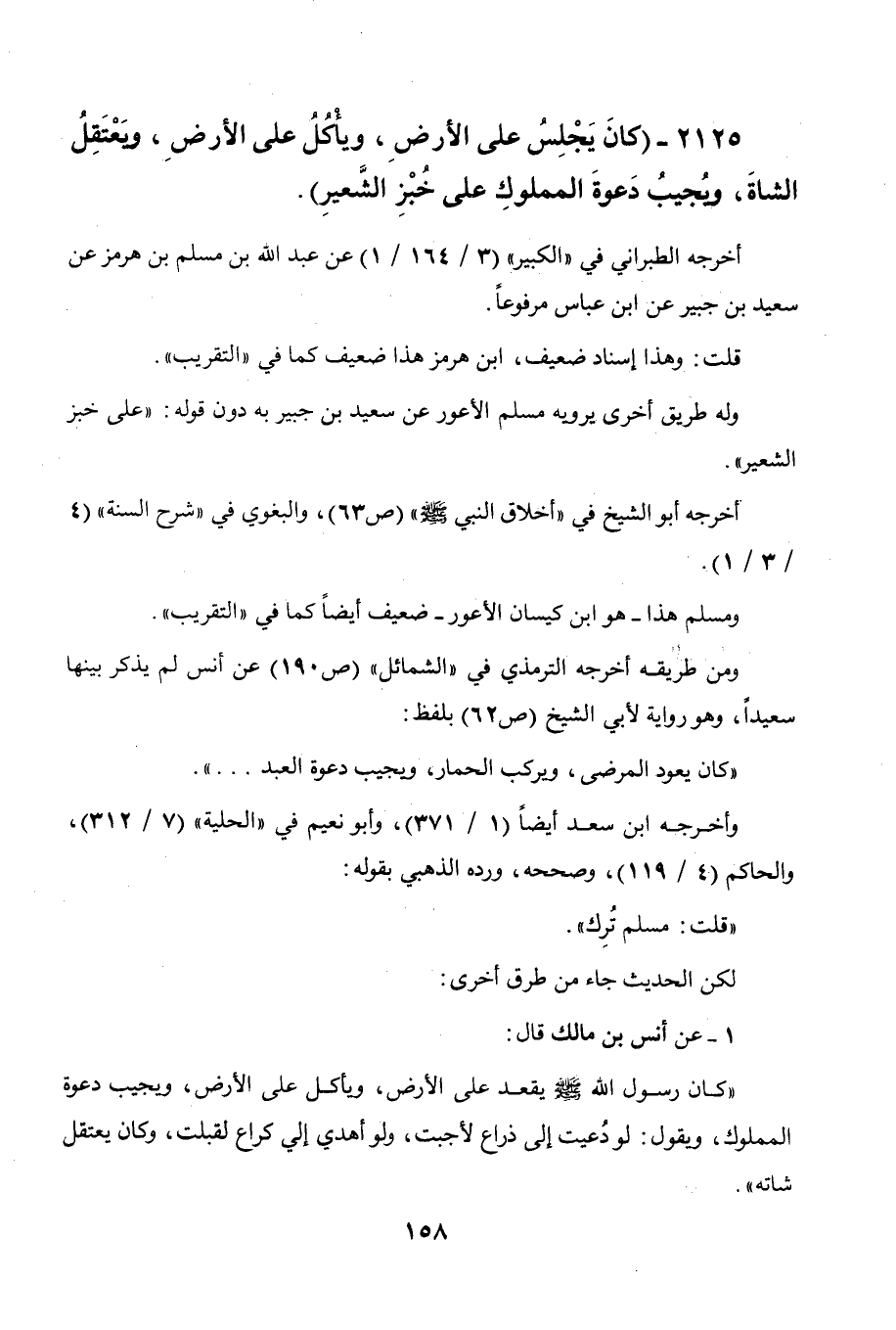 2125 - " كان يجلس على الأرض ويأكل على الأرض ويعتقل الشاة ويجيب دعوة المملوك على
