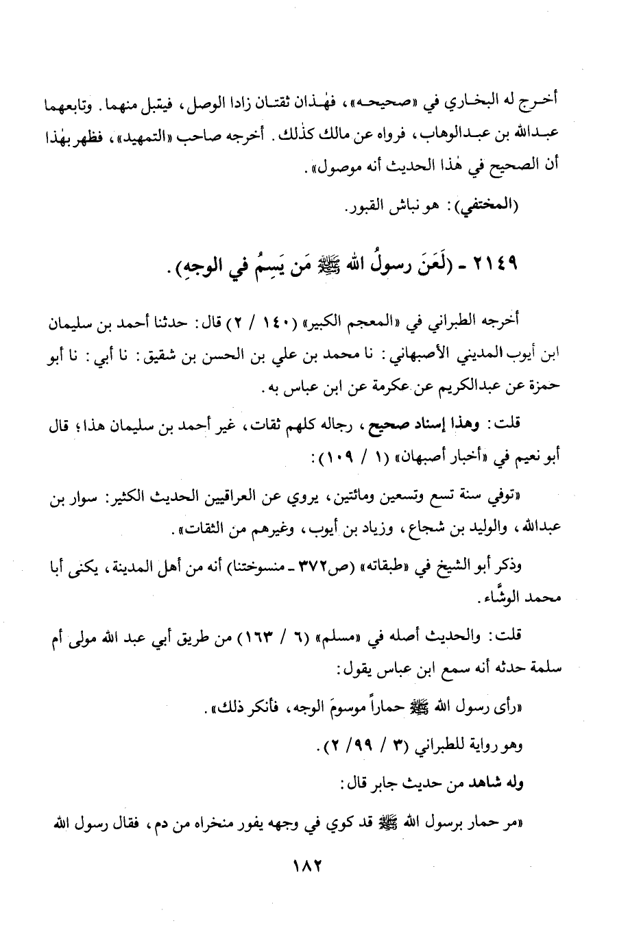 2149 - " لعن رسول الله صلى الله عليه وسلم من يسم في الوجه ".