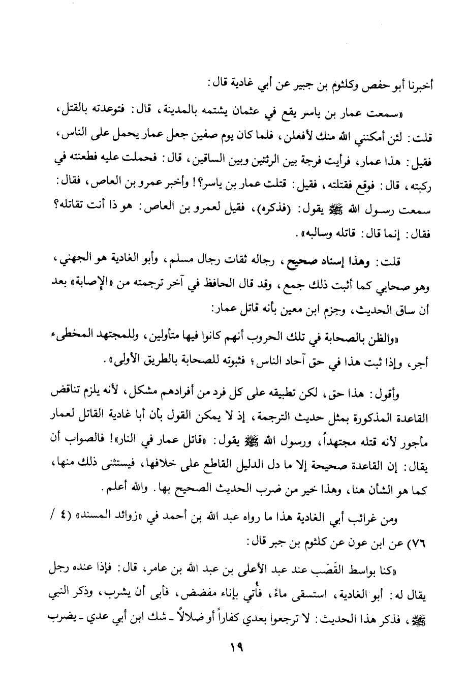 ساق الحديث، وجزم ابن معين بأنه قاتل عمار: " والظن بالصحابة في تلك الحروب