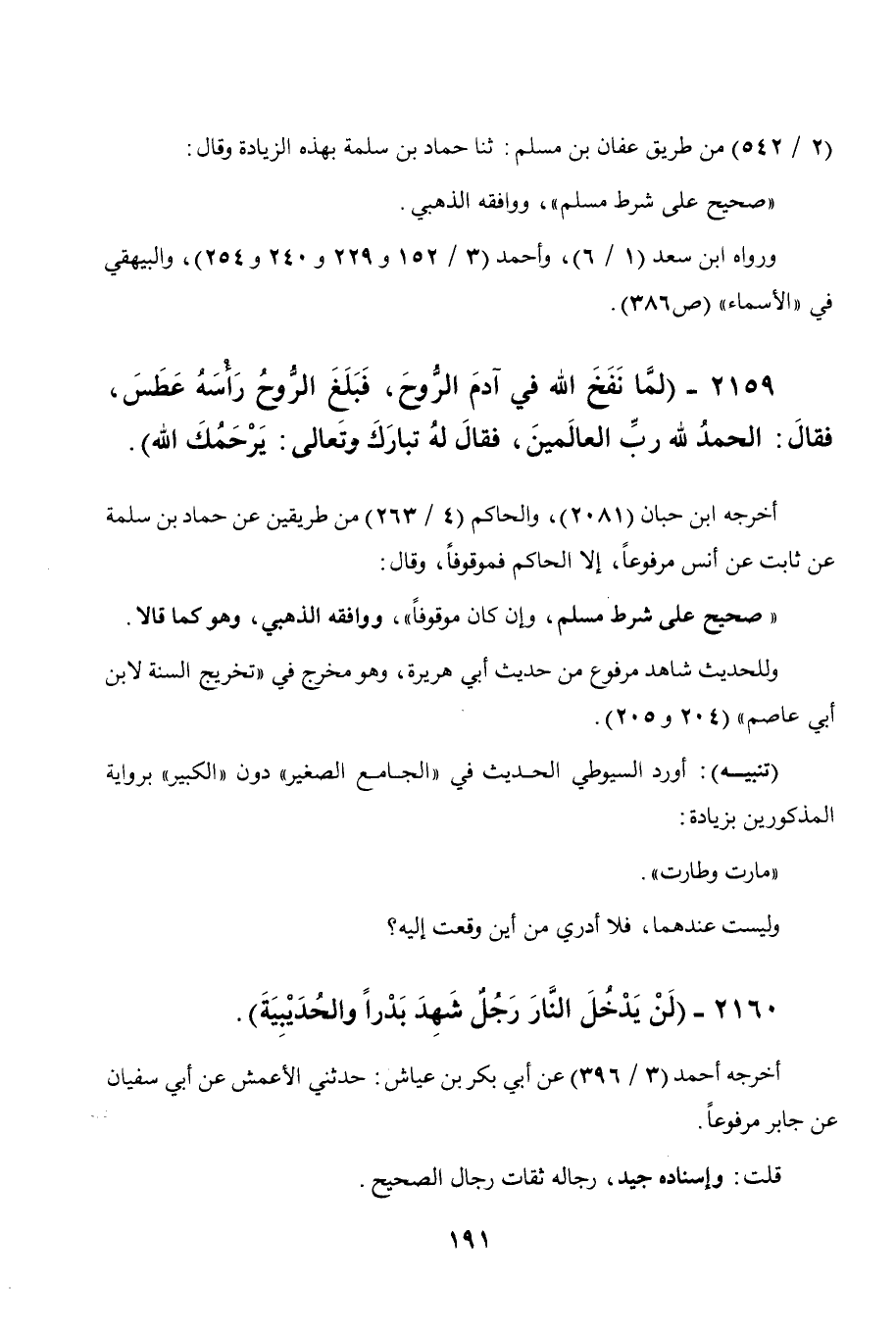 2159 - " لما نفخ الله في آدم الروح، فبلغ الروح رأسه عطس، فقال: الحمد لله رب