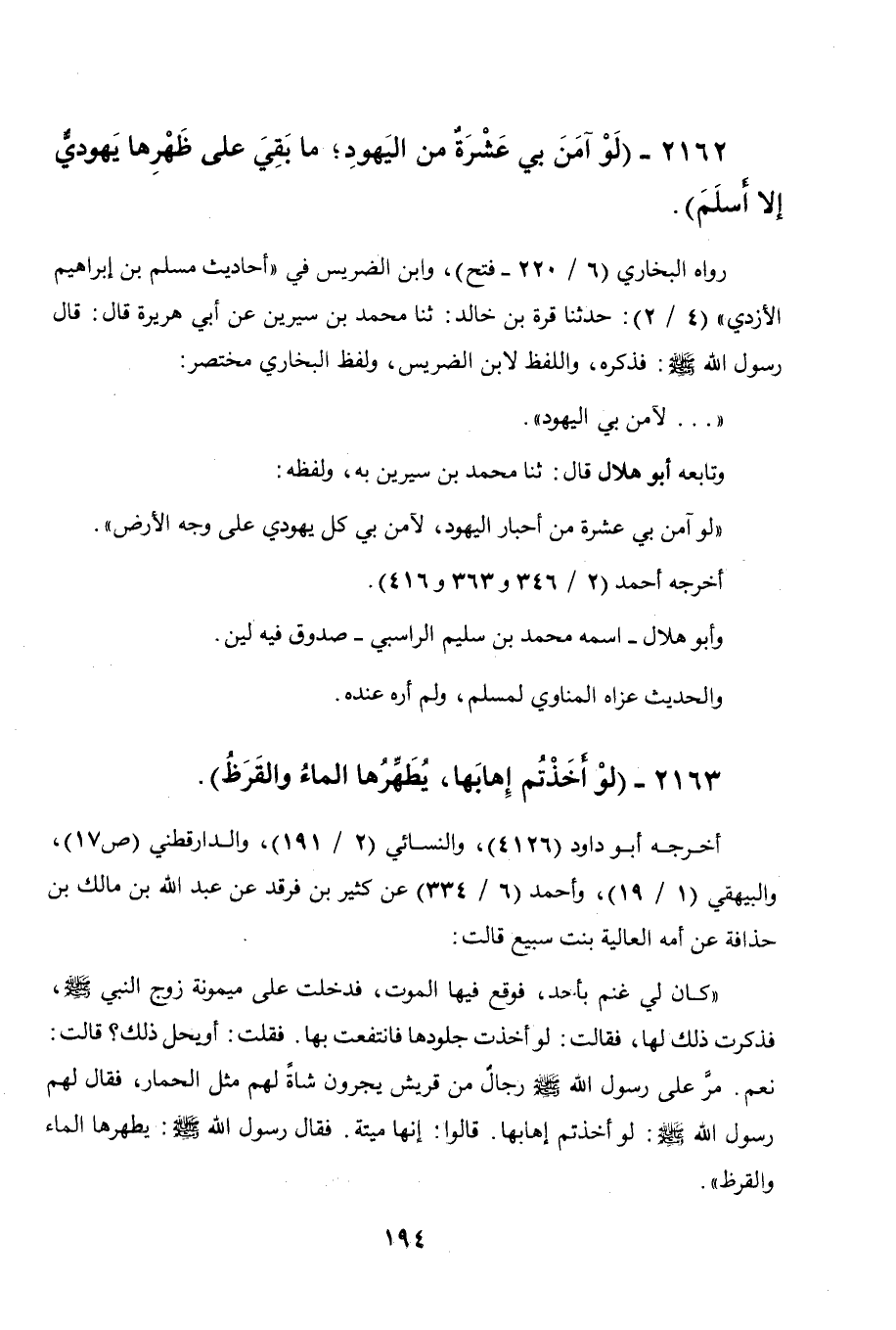 2163 - " لو أخذتم إهابها، يطهرها الماء والقرظ ".