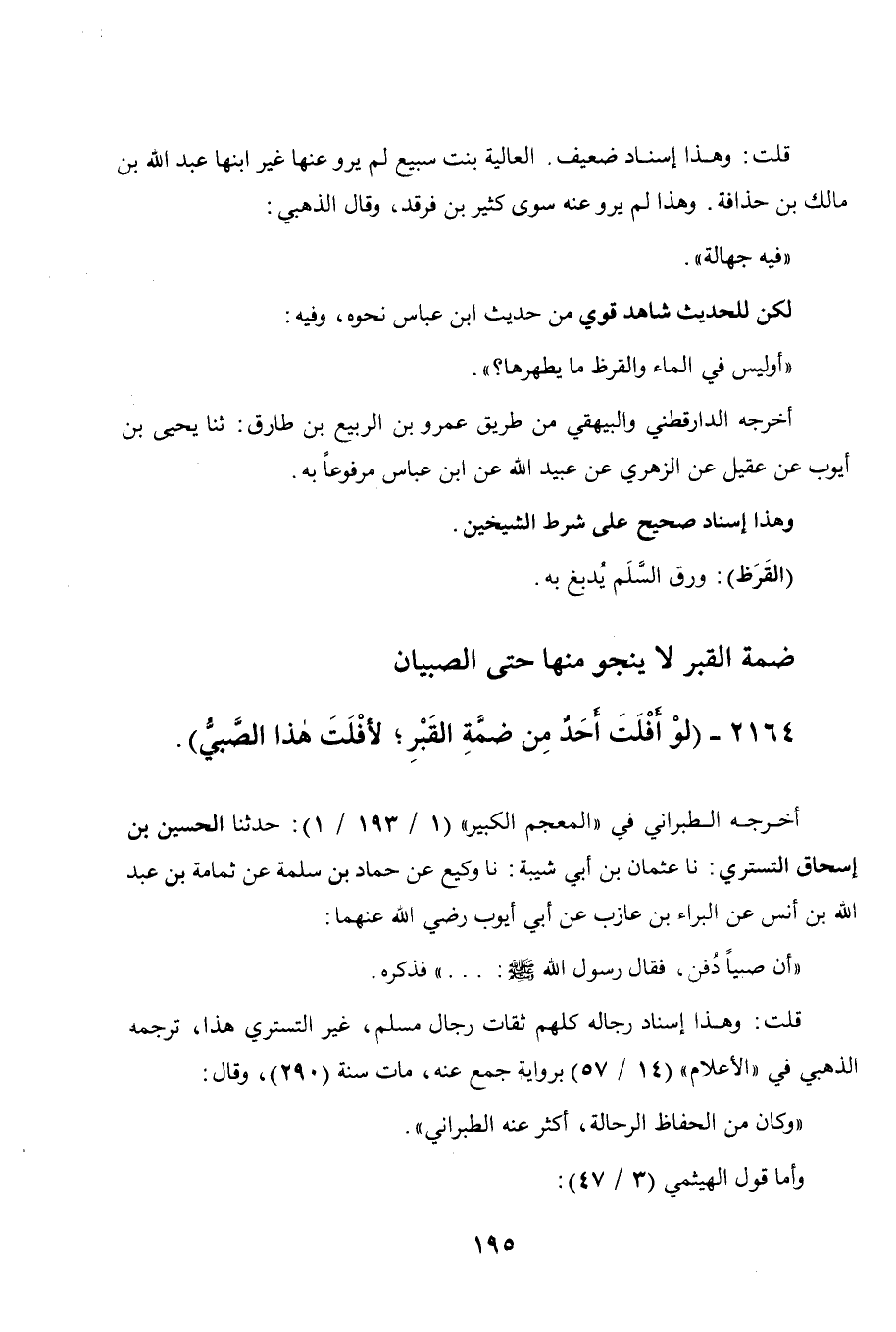 2164 - " لو أفلت أحد من ضمة القبر، لأفلت منها هذا الصبي ".