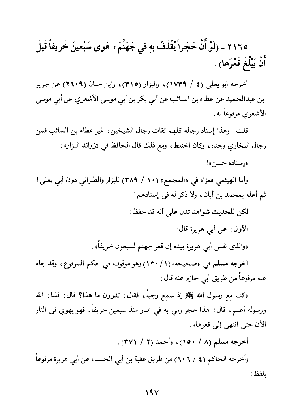 2165 - " لو أن حجرا يقذف به في جهنم، هوى سبعين خريفا قبل أن يبلغ قعرها ".