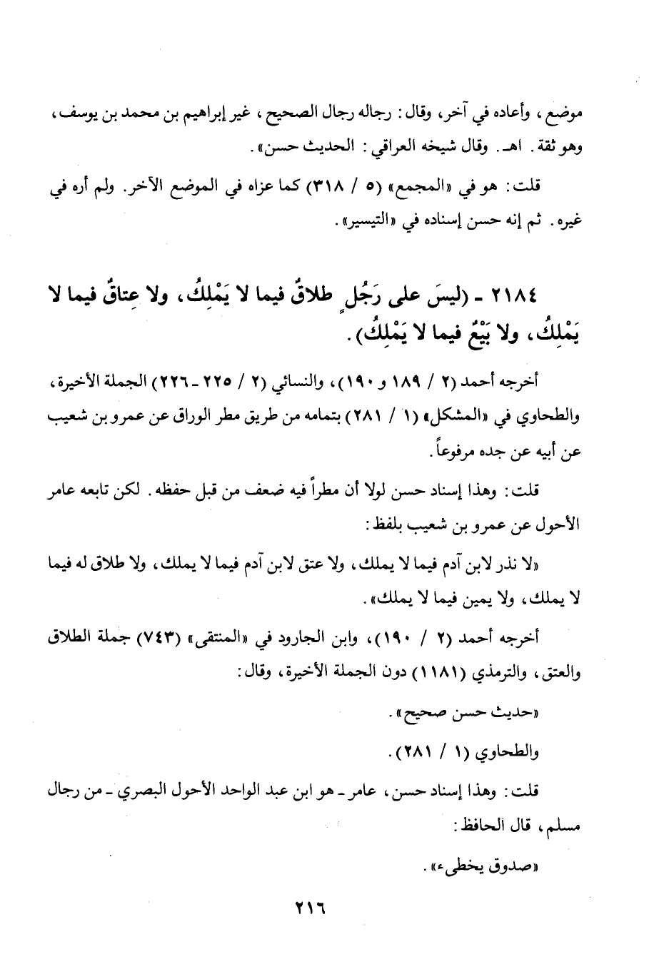 2184 - " ليس على رجل طلاق فيما لا يملك ولا عتاق فيما لا يملك ولا بيع فيما لا يملك