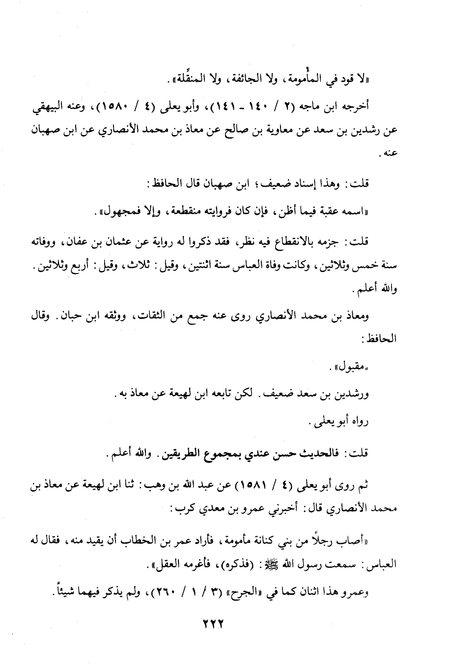معاذ بن محمد الأنصاري قال: أخبرني عمرو بن معدي كرب: " أصاب رجلا من بني