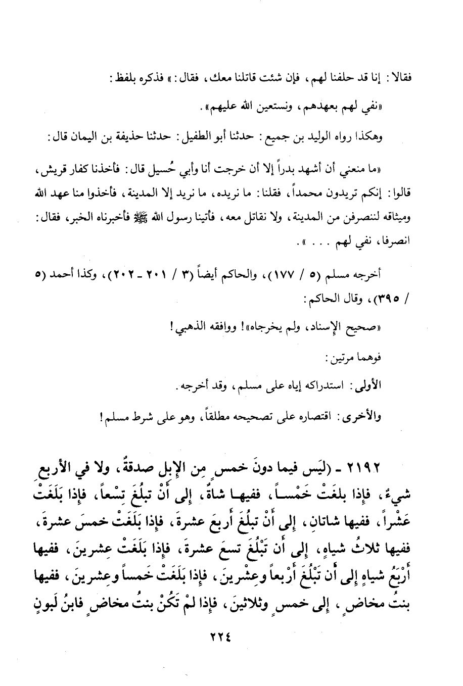 2192 - " ليس فيما دون خمس من الإبل صدقة، ولا في الأربع شيء، فإذا بلغت خمسا،