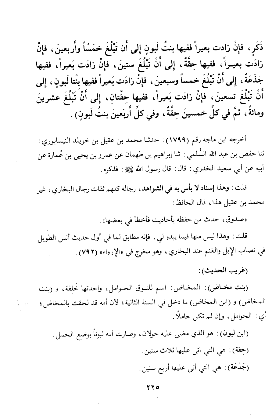 وسبعين، فإن زادت بعيرا ففيها بنتا لبون، إلى أن تبلغ تسعين، فإن زادت بعيرا