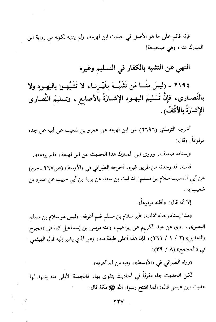 2194 - " ليس منا من تشبه بغيرنا، لا تشبهوا باليهود ولا بالنصارى، فإن تسليم