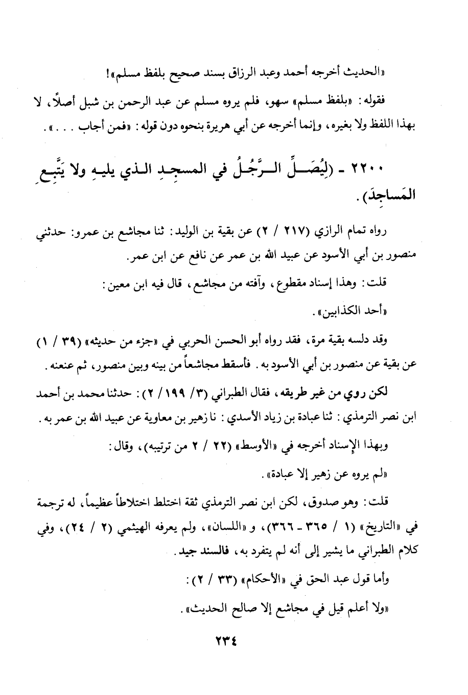 2200 - " ليصل الرجل في المسجد الذي يليه ولا يتبع المساجد ".