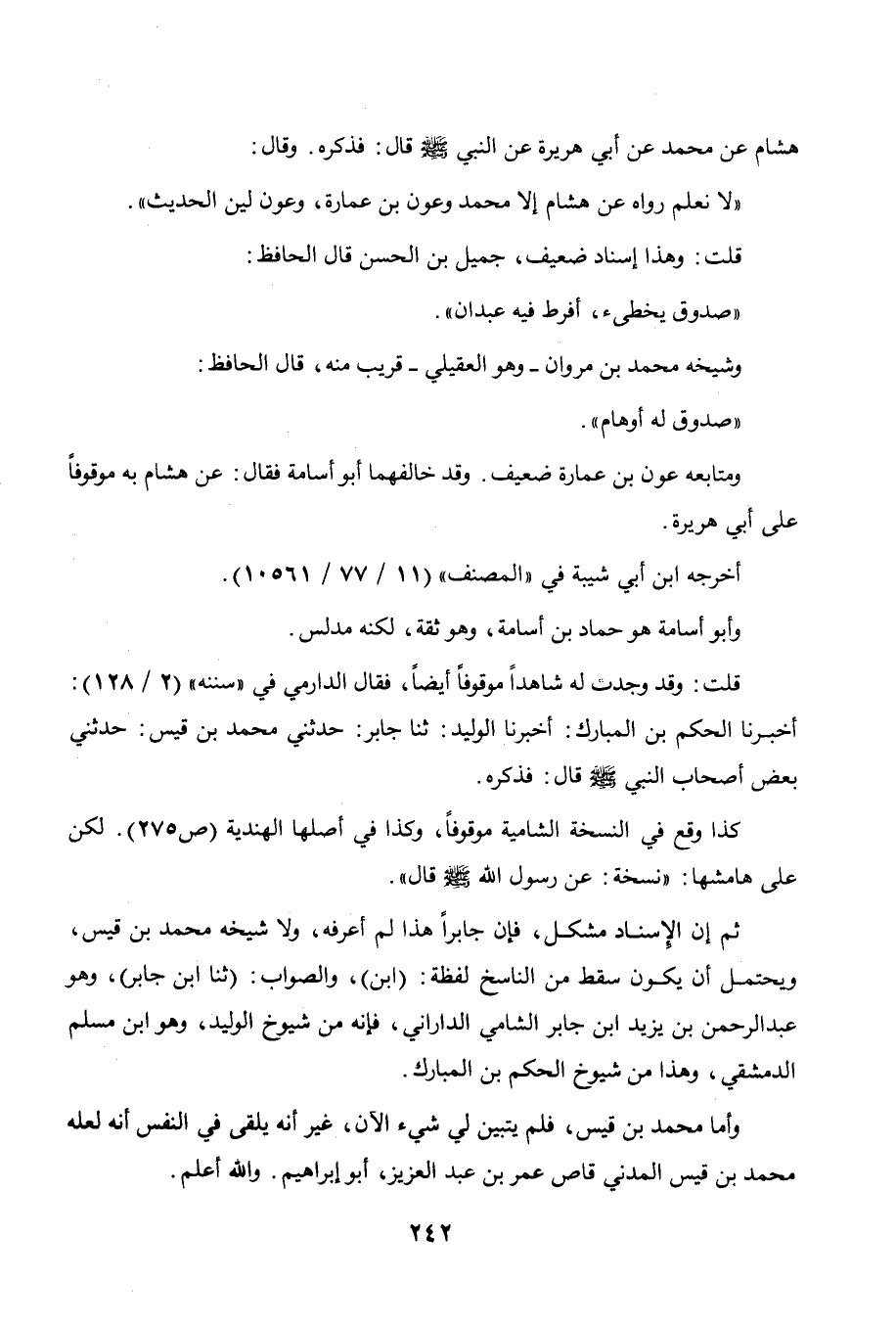 عليه وسلم قال: فذكره. وقال: " لا نعلم رواه عن هشام إلا محمد وعون بن