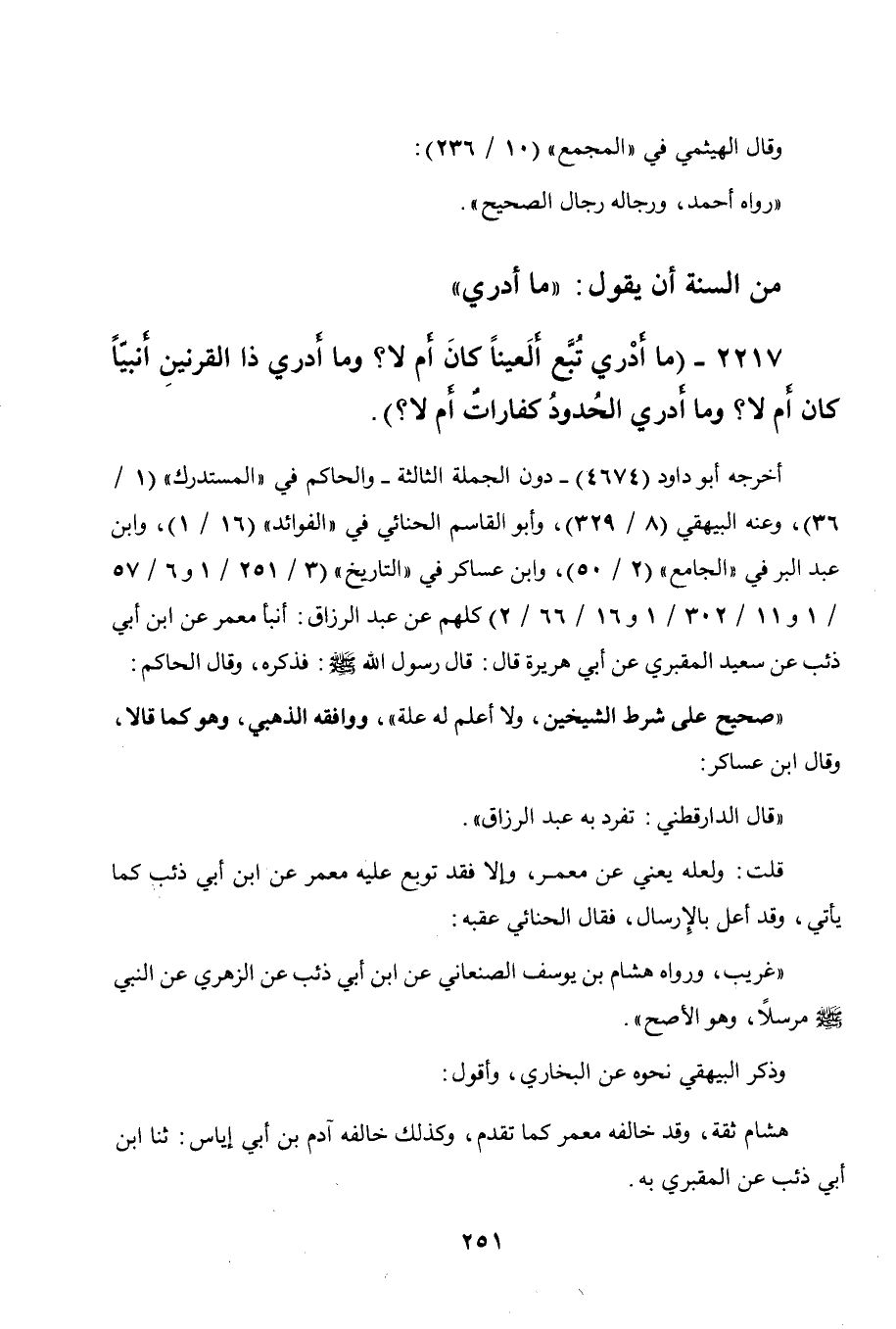 2217 - " ما أدري تبع ألعينا كان أم لا؟ وما أدري ذا القرنين أنبيا كان أم لا؟ وما