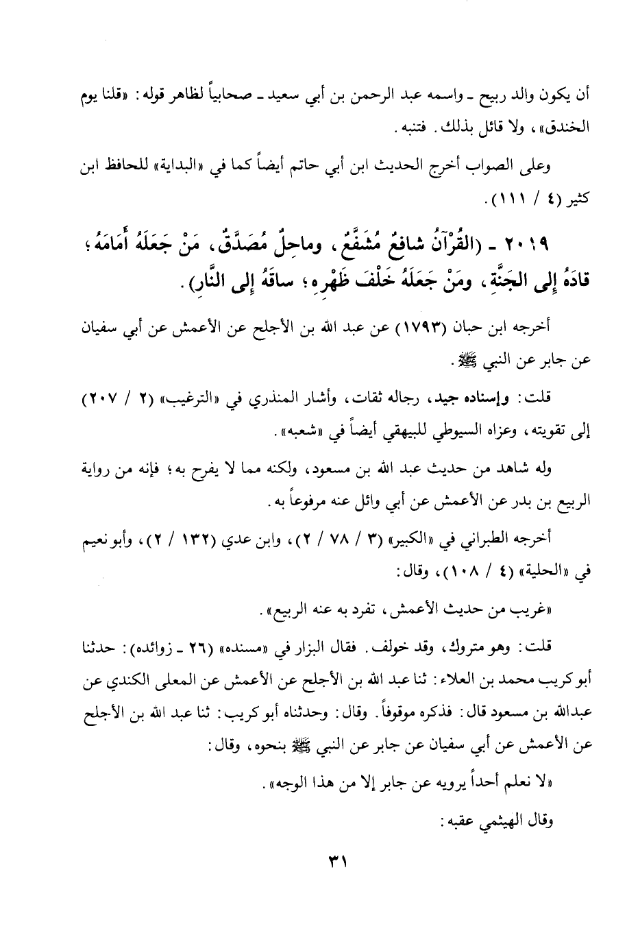 2019 - " القرآن شافع مشفع وماحل مصدق من جعله أمامه قاده إلى الجنة ومن جعله خلف