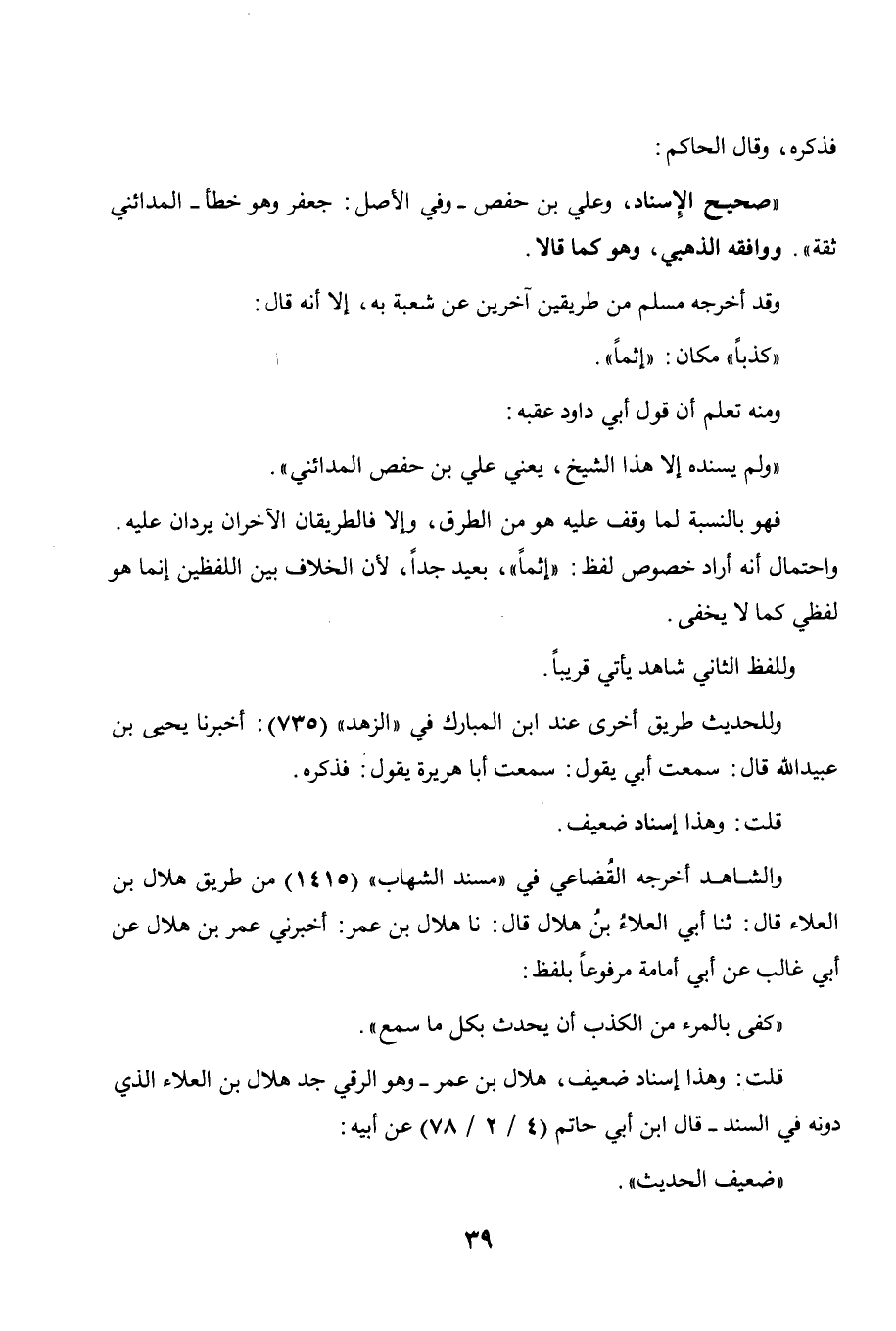 يعني علي بن حفص المدائني ". فهو بالنسبة لما وقف عليه هو من الطرق، وإلا