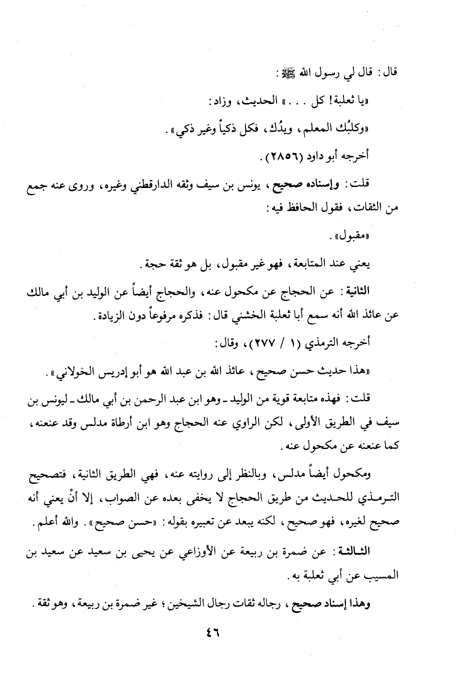 قال: قال لي رسول الله صلى الله عليه وسلم: " يا ثعلبة! كل ... " الحديث،