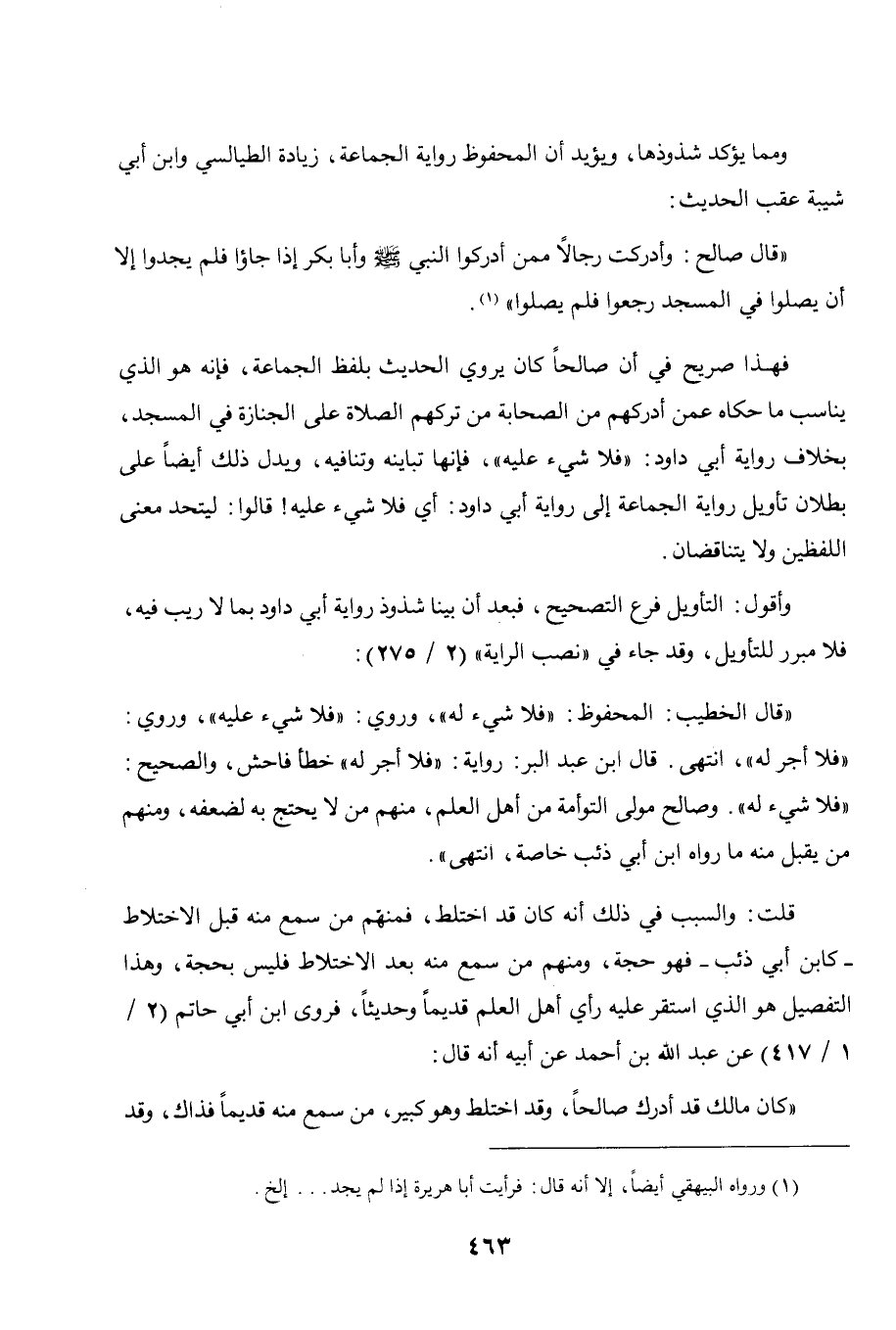 أن يصلوا في المسجد رجعوا فلم يصلوا " (¬1) . فهذا صريح في أن صالحا كان يروي