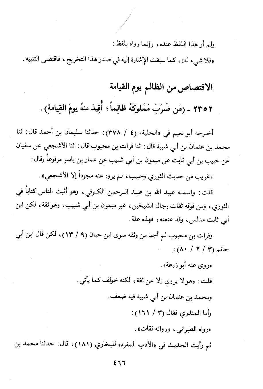 2352 - " من ضرب مملوكه ظالما أقيد منه يوم القيامة ".