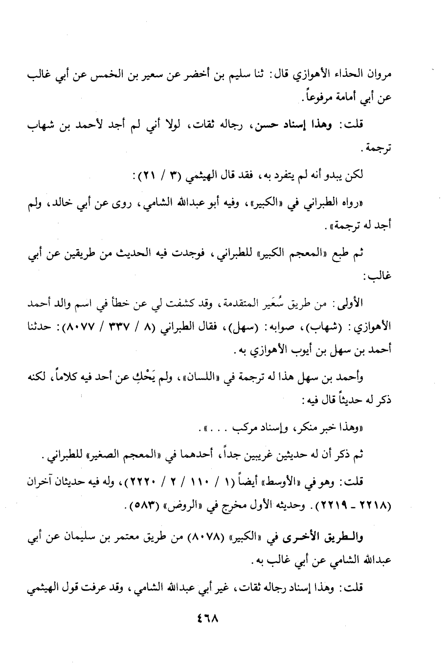 كشفت لي عن خطأ في اسم والد أحمد الأهوازي: (شهاب) ، صوابه: (سهل) ، فقال