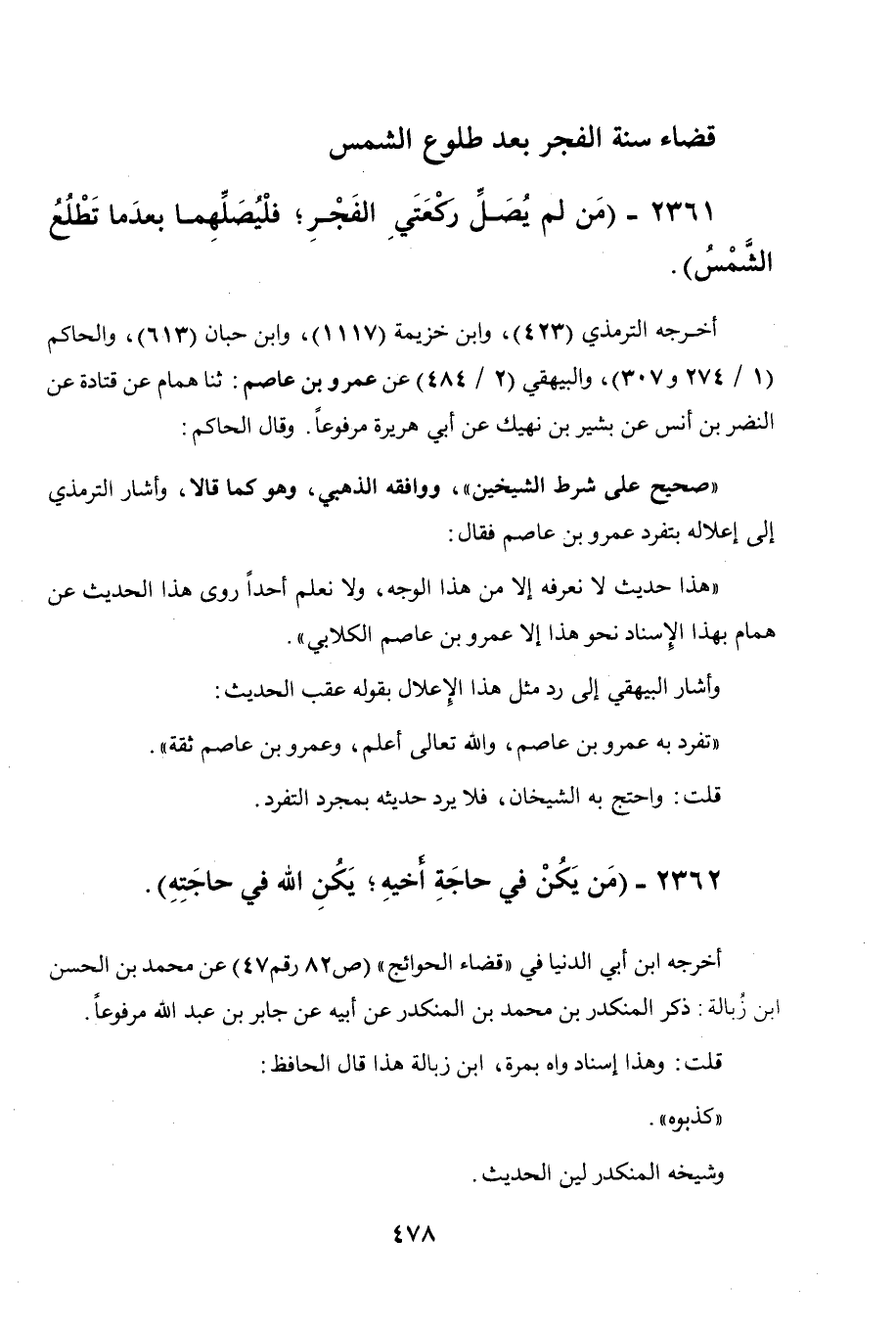 2361 - " من لم يصل ركعتي الفجر، فليصلهما بعدما تطلع الشمس ".