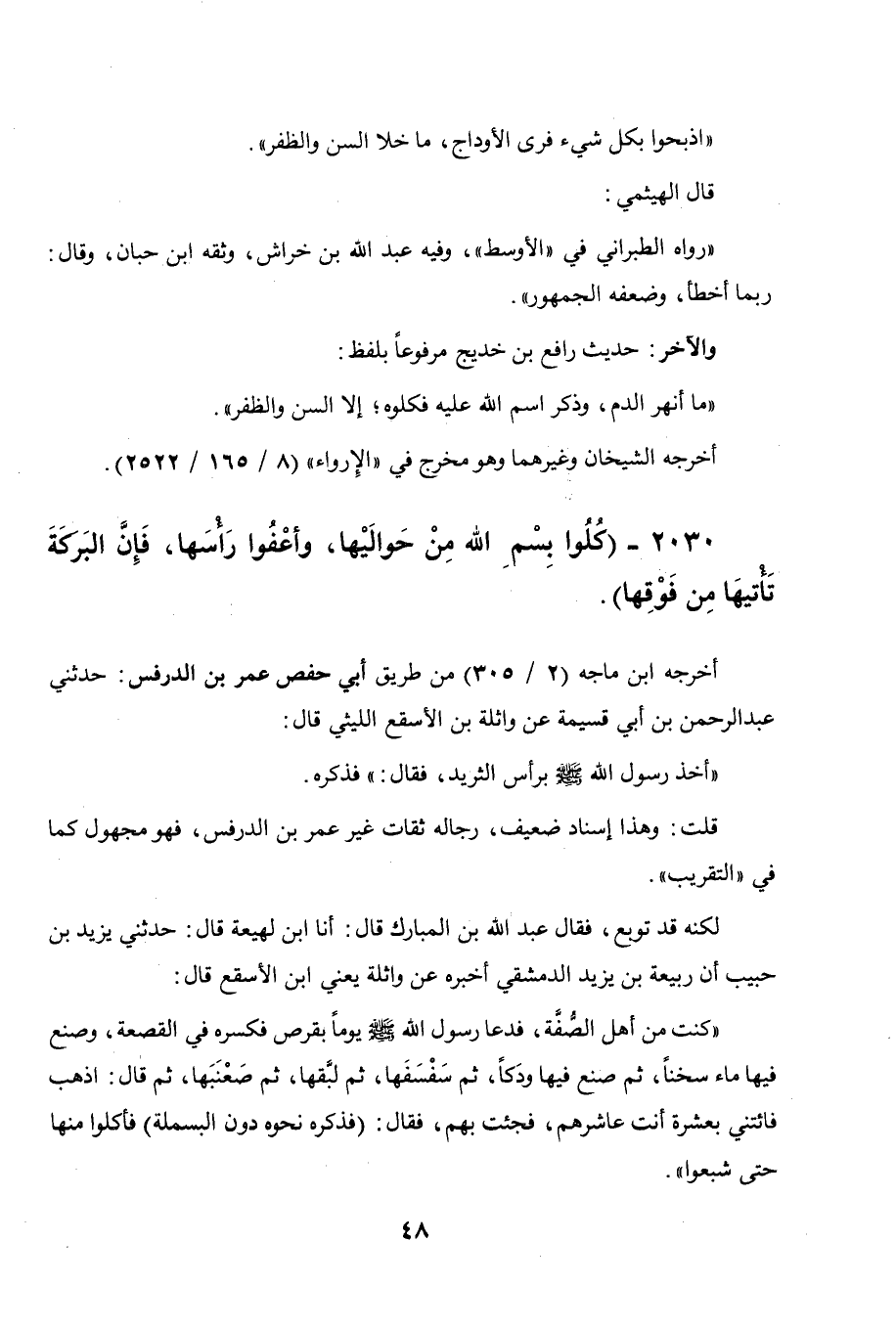 الأوداج، ما خلا السن والظفر ". قال الهيثمي: " رواه الطبراني في " الأوسط