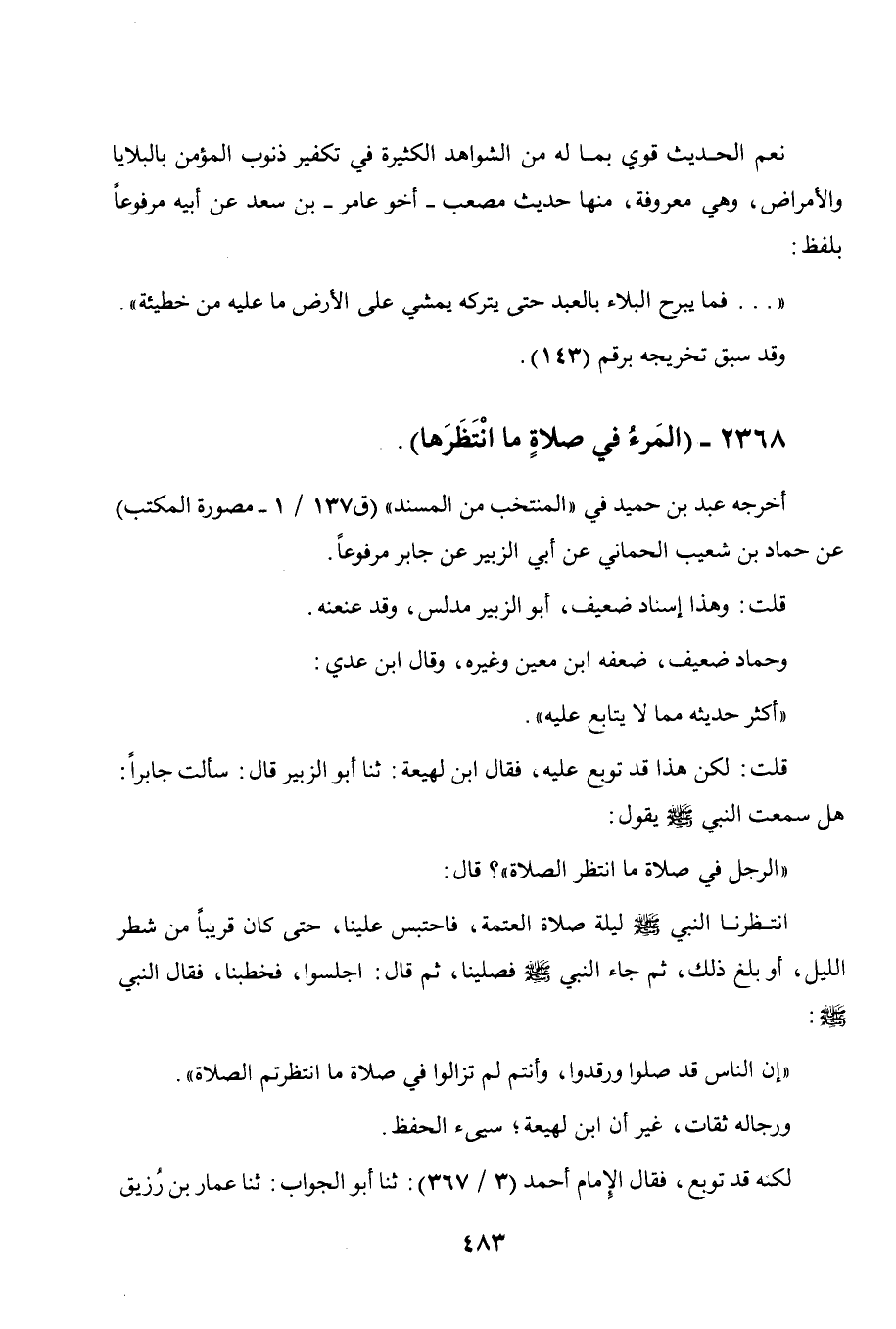 وأنتم لم تزالوا في صلاة ما انتظرتم الصلاة ". ورجاله ثقات، غير أن ابن