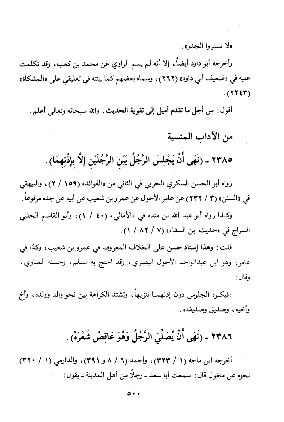2385 - " نهى أن يجلس الرجل بين الرجلين إلا بإذنهما ".