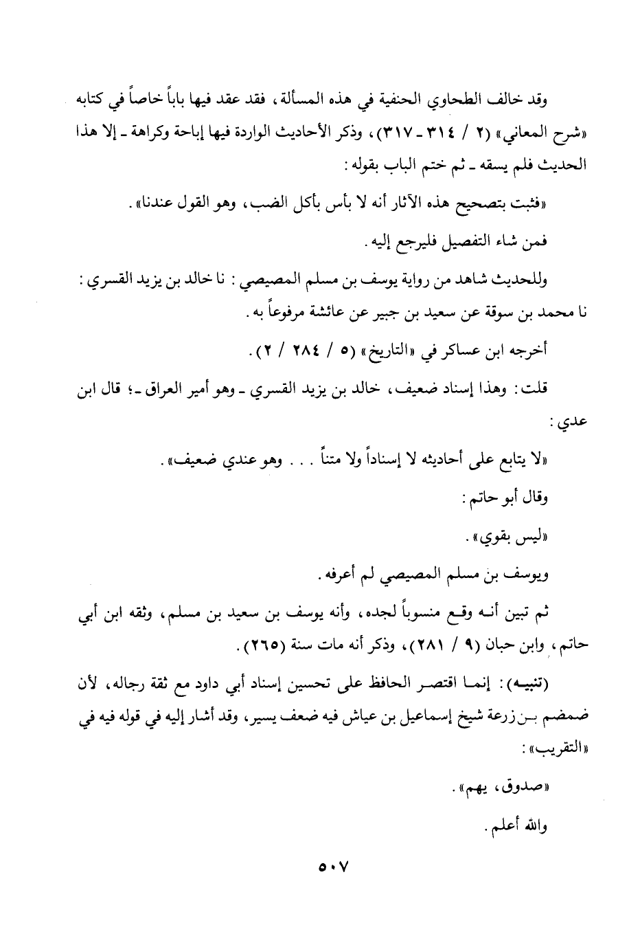 يسقه - ثم ختم الباب بقوله: " فثبت بتصحيح هذه الآثار أنه لا بأس بأكل الضب،