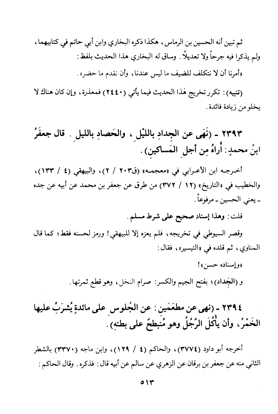 2393 - " نهى عن الجداد بالليل والحصاد بالليل. قال جعفر بن محمد: أراه من أجل