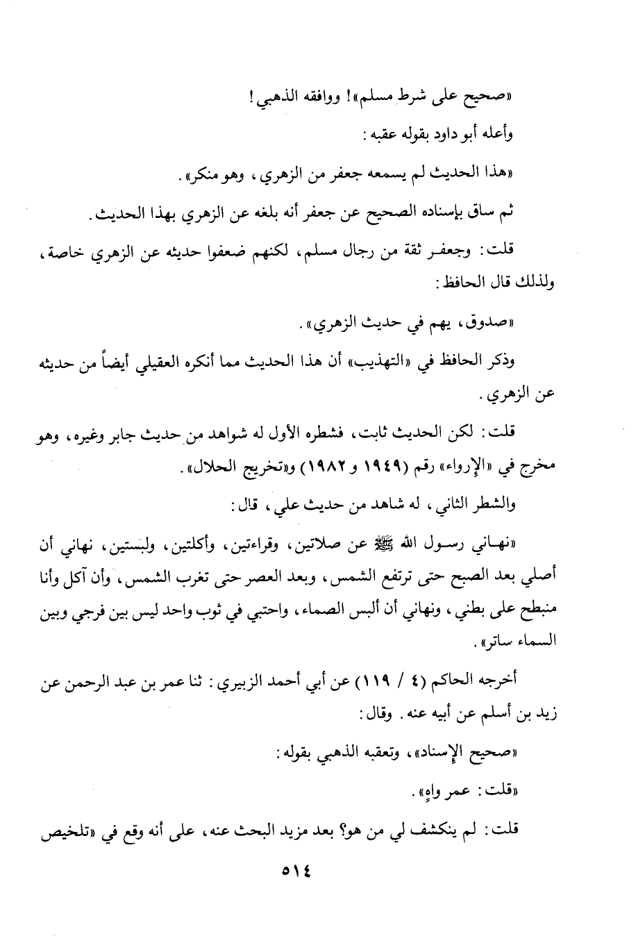 في حديث الزهري ". وذكر الحافظ في " التهذيب " أن هذا الحديث مما أنكره