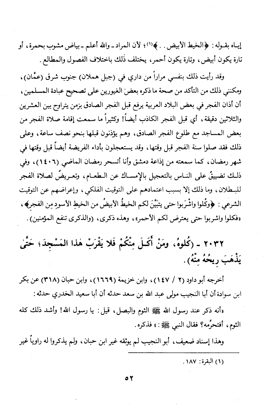 لكم الخيط الأبيض من الخيط الأسود من الفجر) * " فكلوا واشربوا حتى يعترض لكم