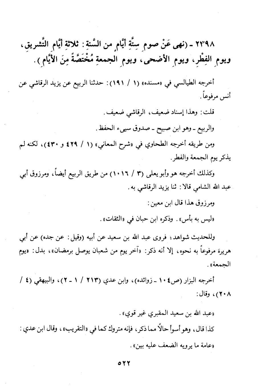 429 و 430) لكنه لم يذكر يوم الجمعة والفطر. وكذلك أخرجه هو وأبو يعلى (3