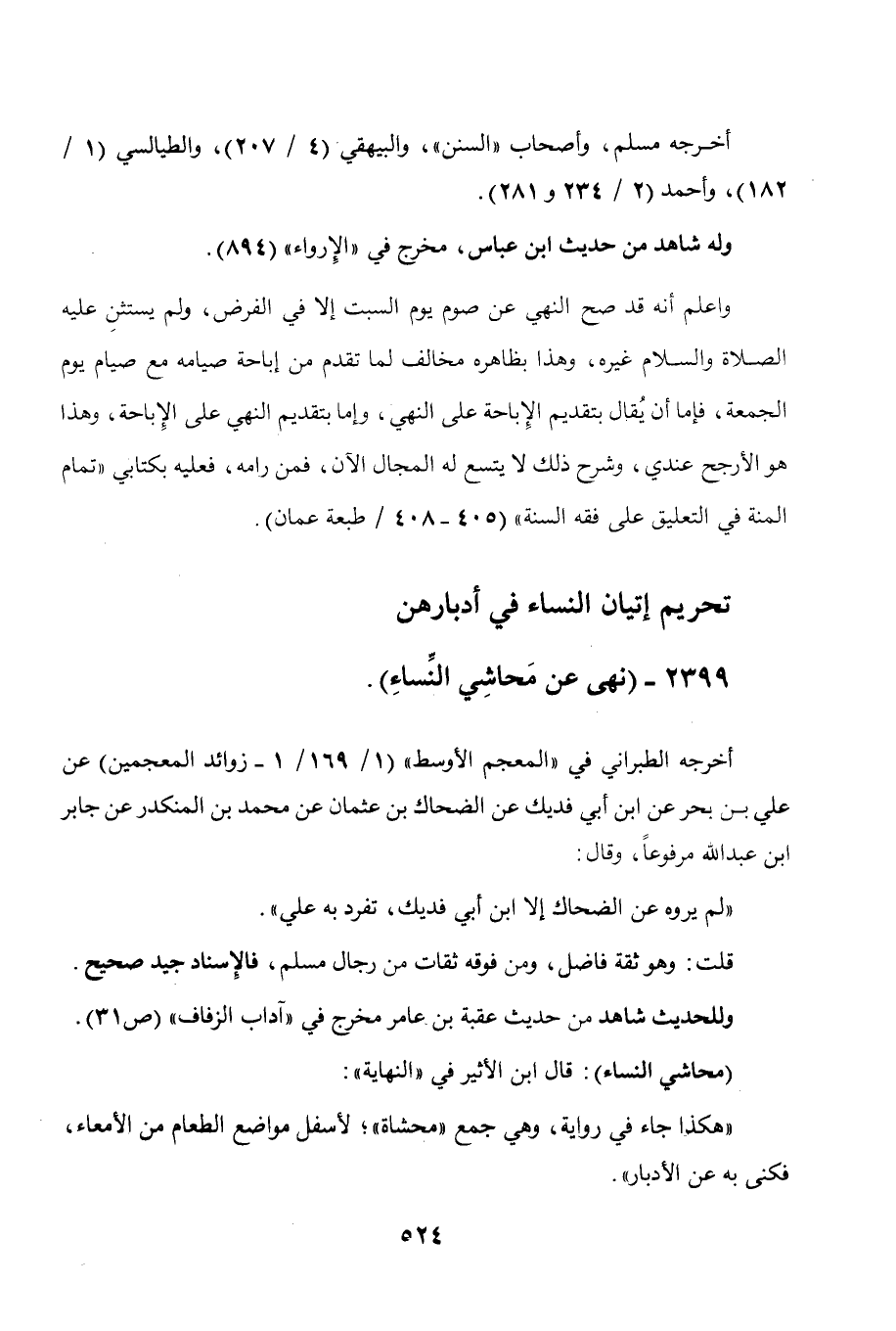 المنة في التعليق على فقه السنة " (405 - 408 / طبعة عمان) .