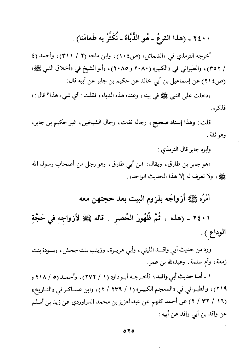 2401 - " هذه، ثم ظهور الحصر. قاله صلى الله عليه وسلم لأزواجه في حجة الوداع ".